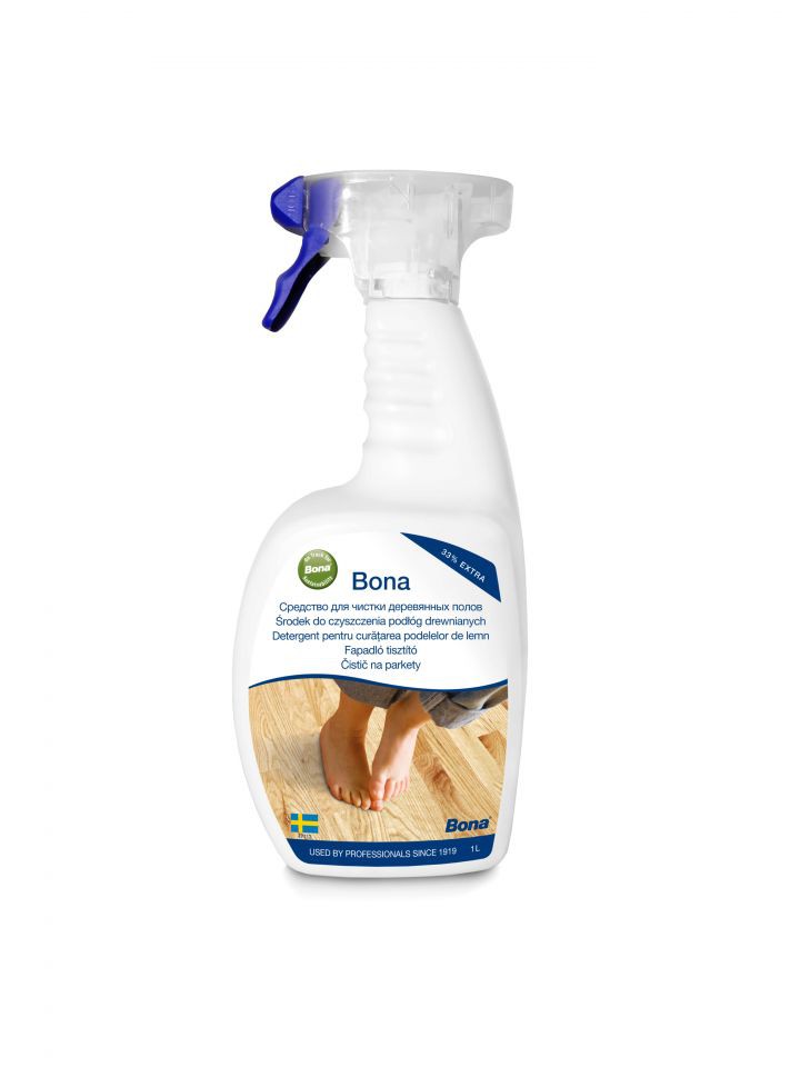 Bona čistič na parkety je určený špeciálne na čistenie lakovaných drevených a tvrdých voskovaných drevených podláh. Je pripravený k okamžitému použitiu. Jednoduchá a bezpečná aplikácia nastriekaním na podlahu a následne sa hneď zotriete mopom. Je pH neutrálny. Vďaka špeciálnemu zloženiu nevytvára šmuhy, nezanecháva škvrny a pritom účinne odstraňuje nečistoty a špinu.