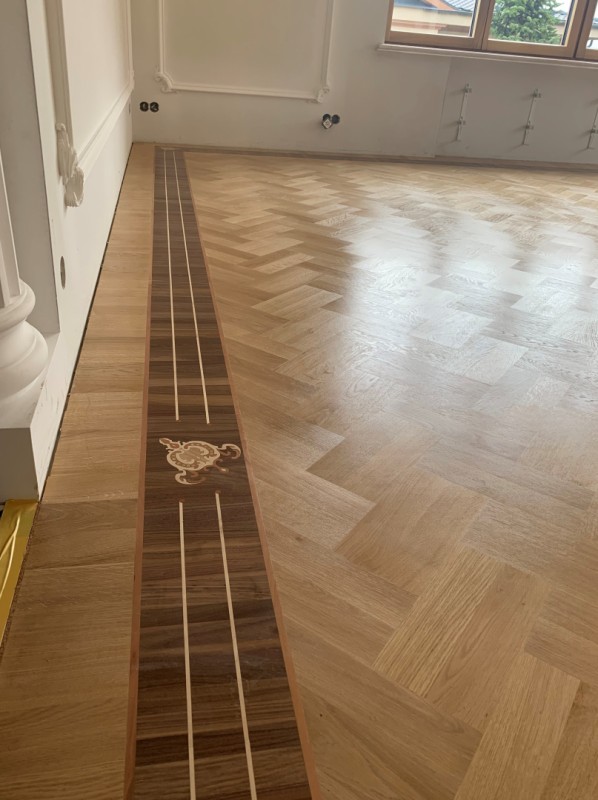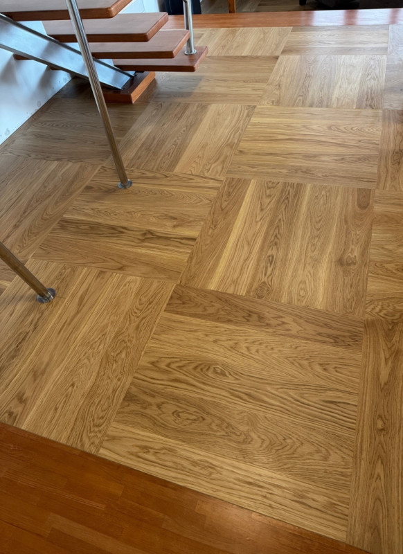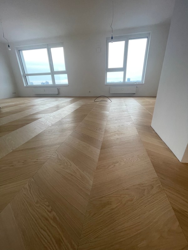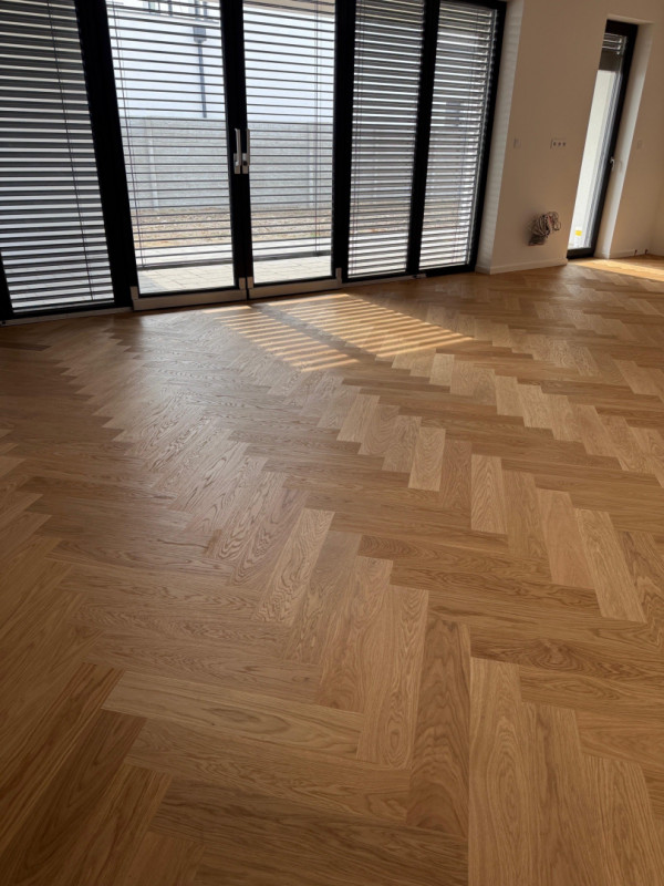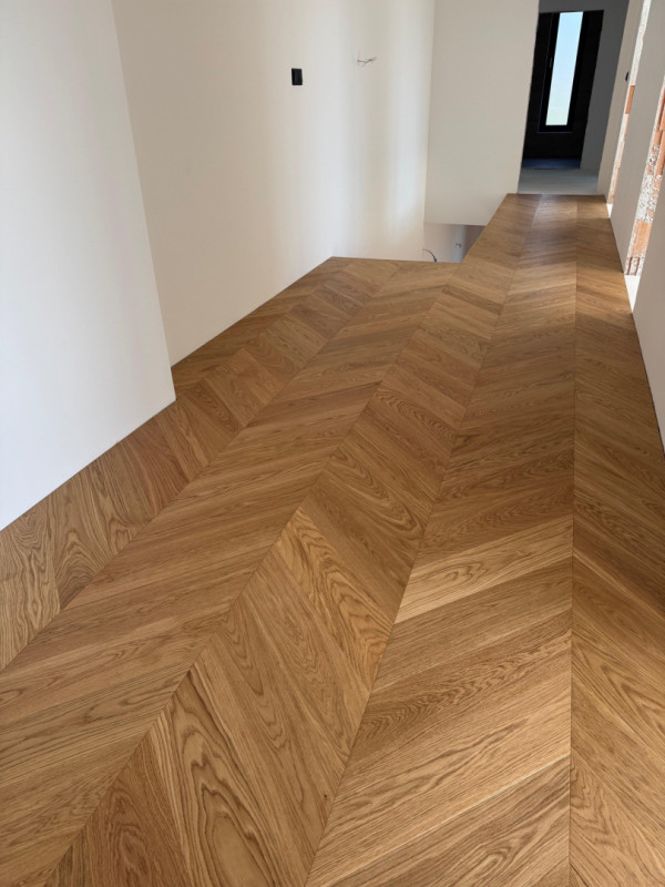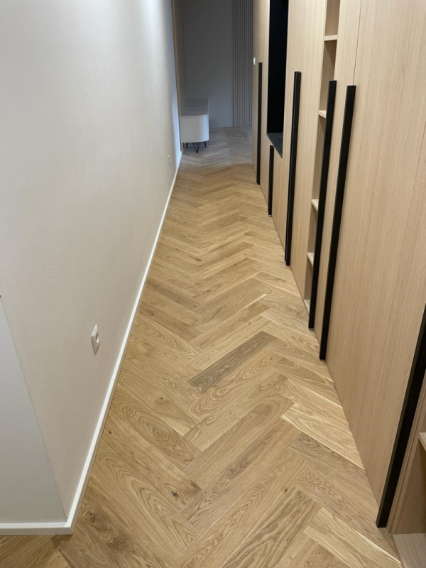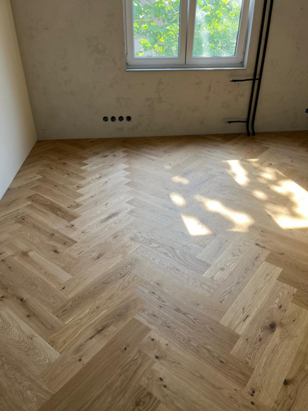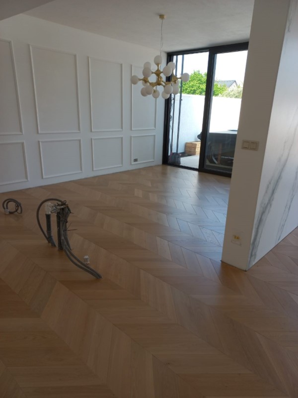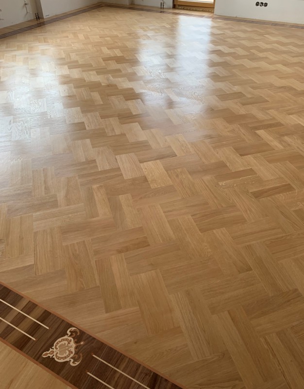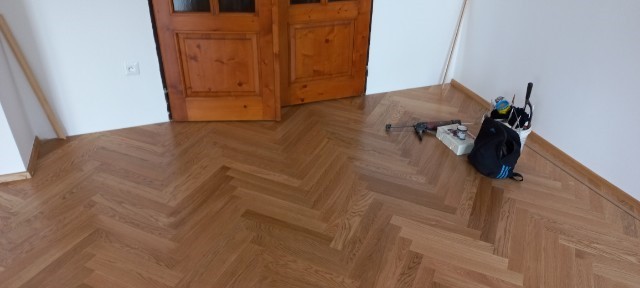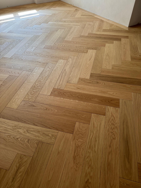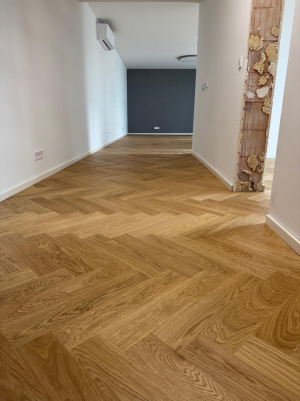 Dubové vlysy 500*60*21 mm, pokládka, povrchová úprava