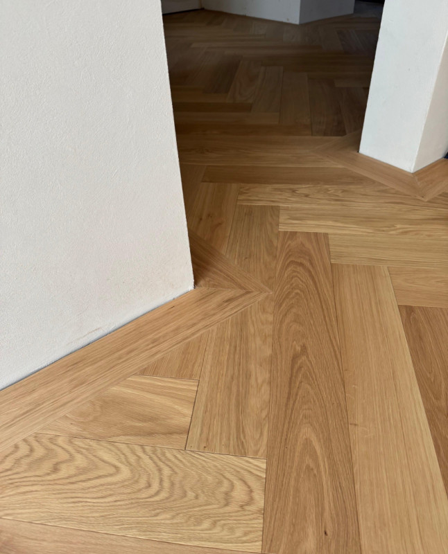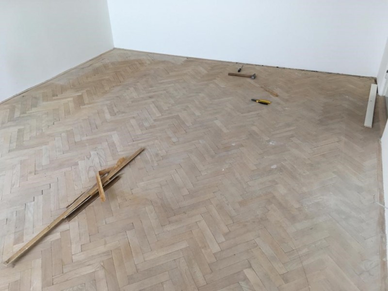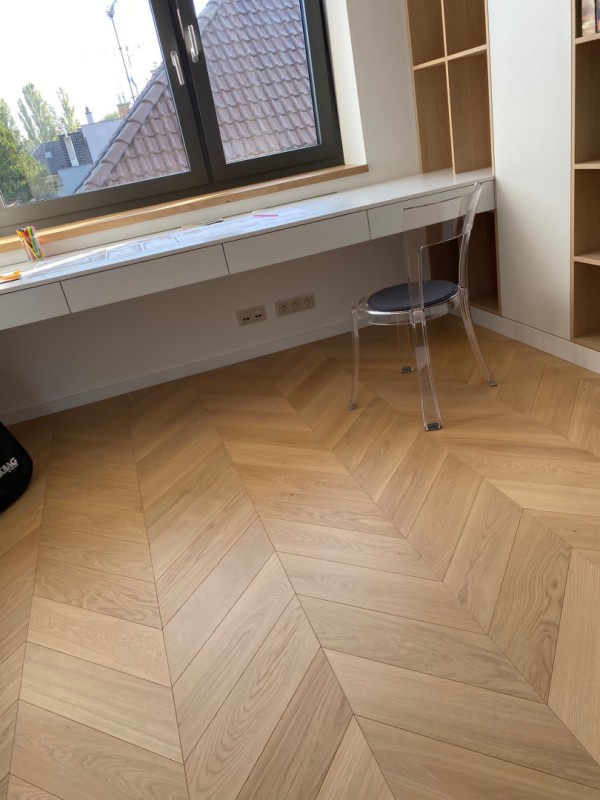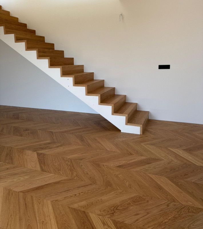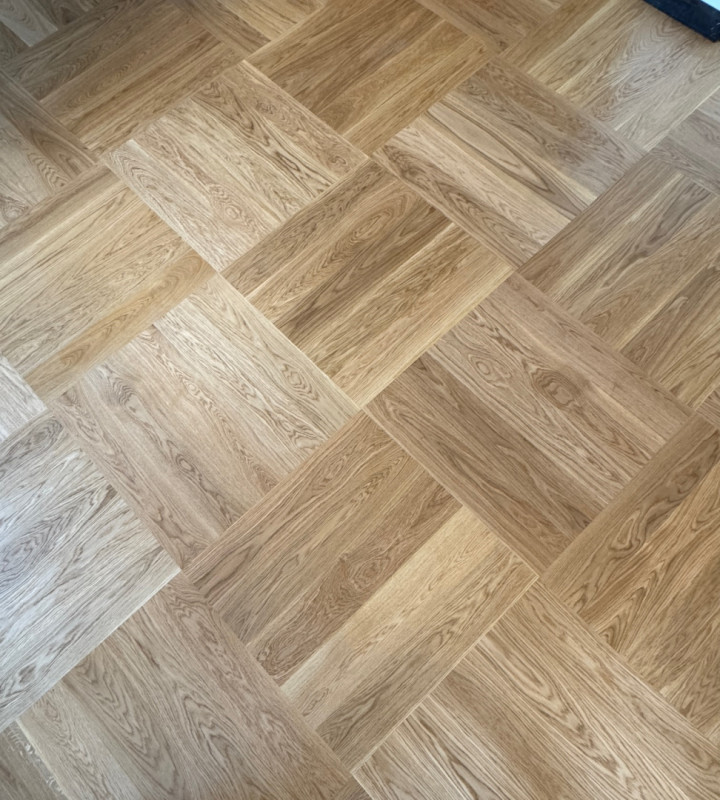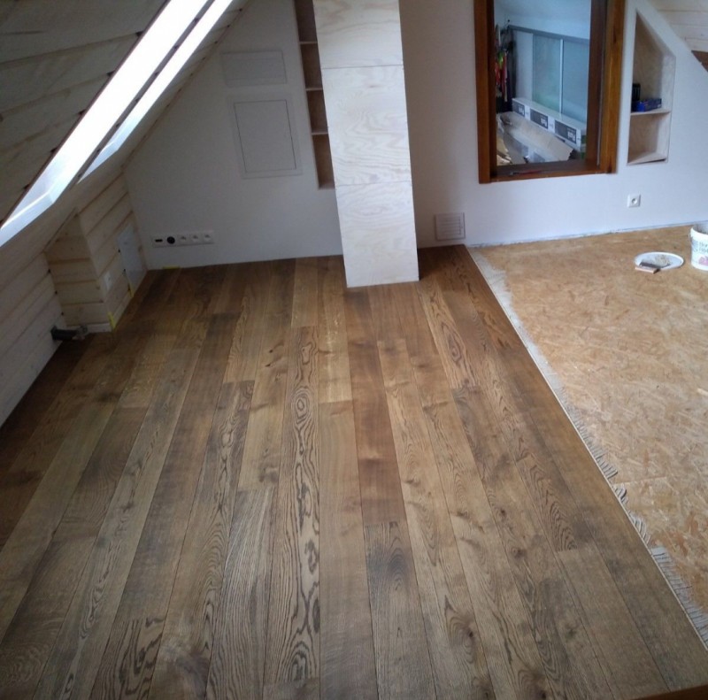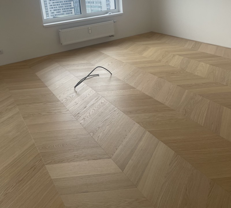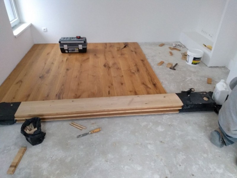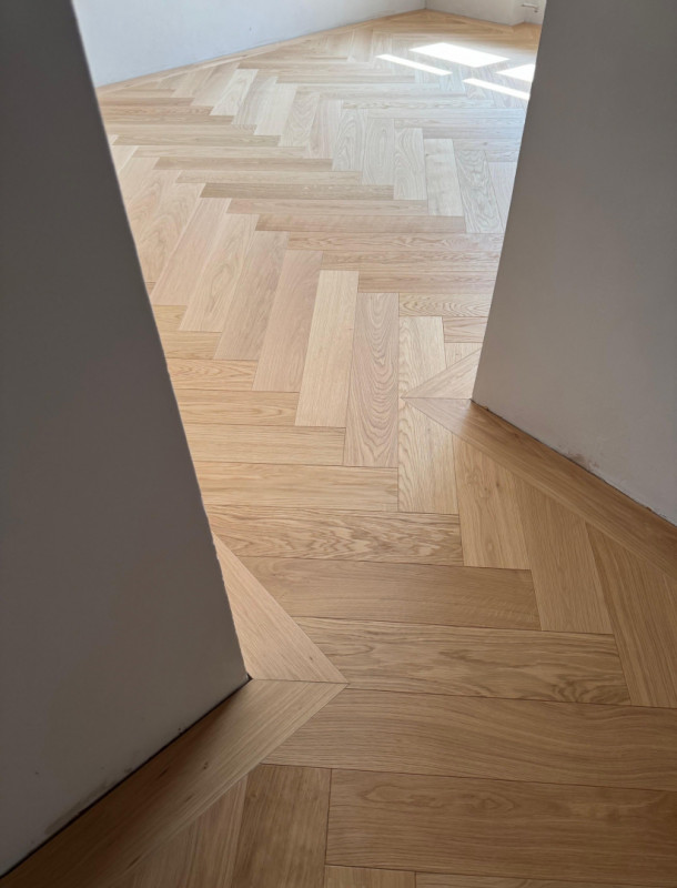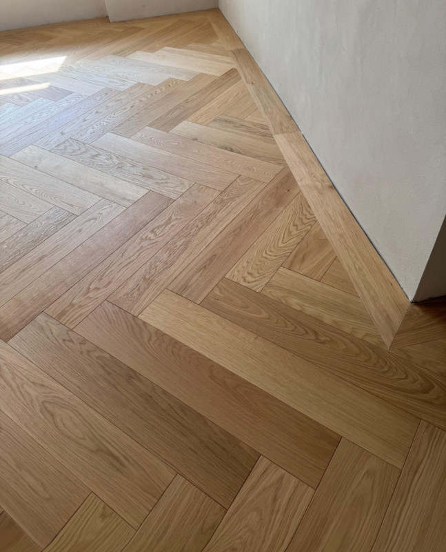 Dubové vlysy 500*60*21 mm, pokládka, povrchová úprava