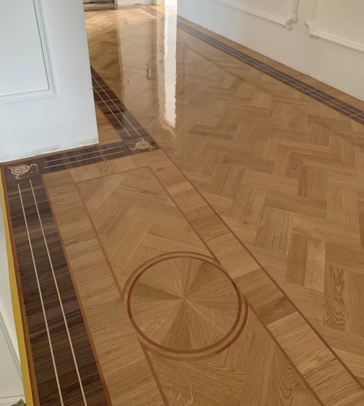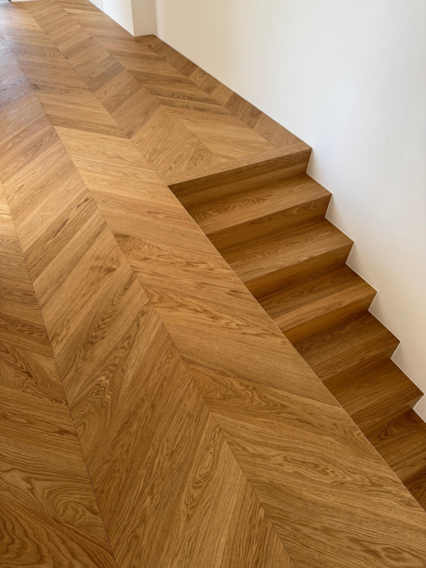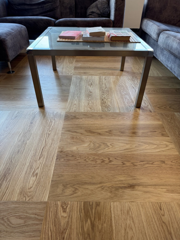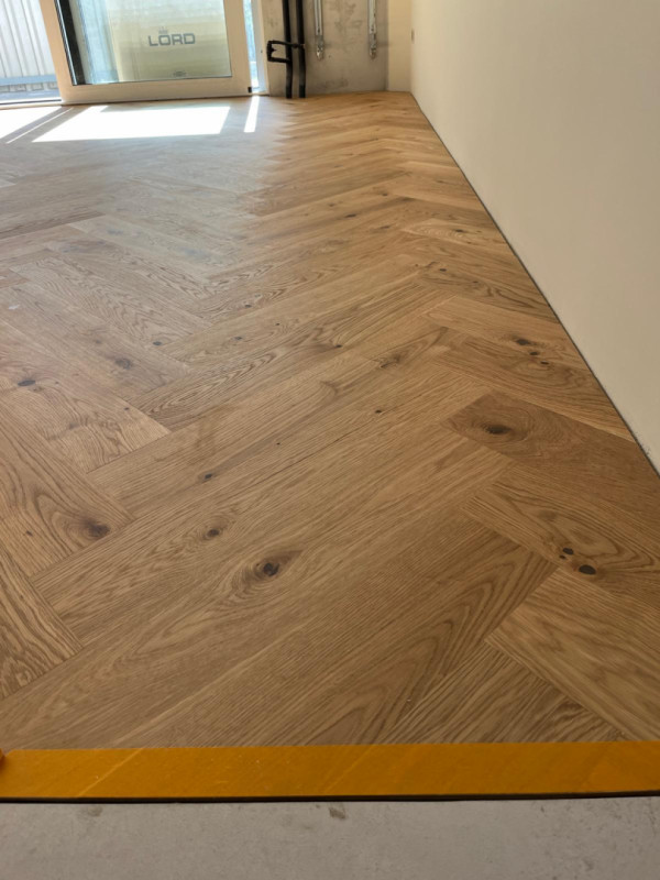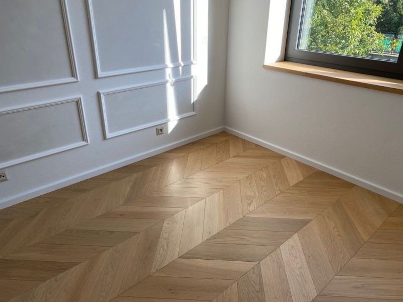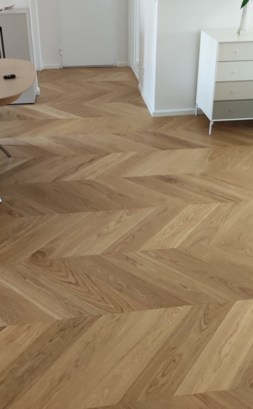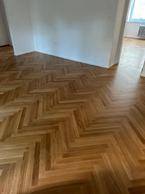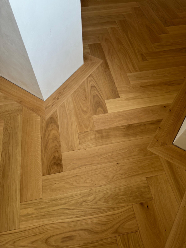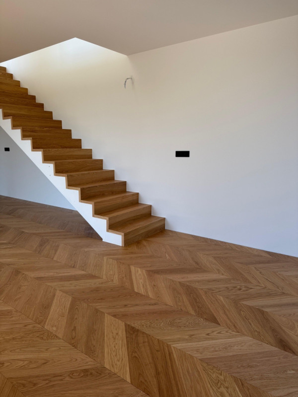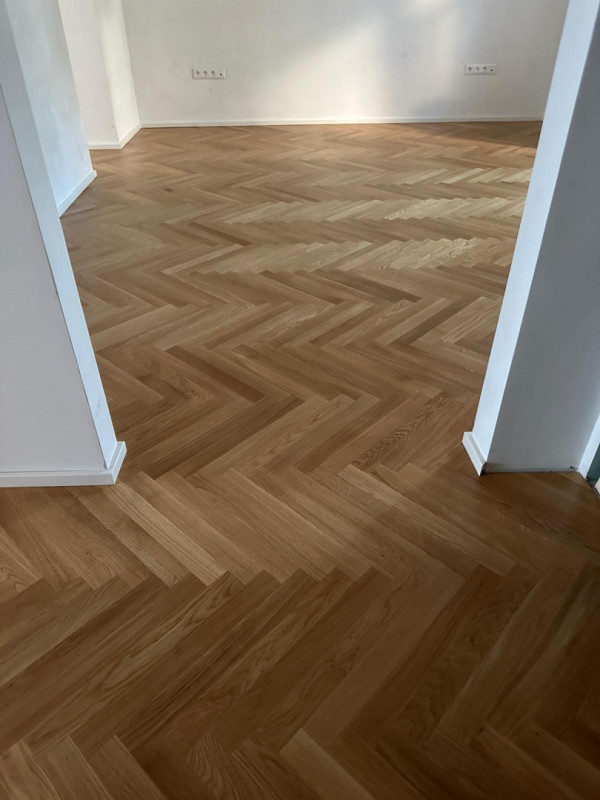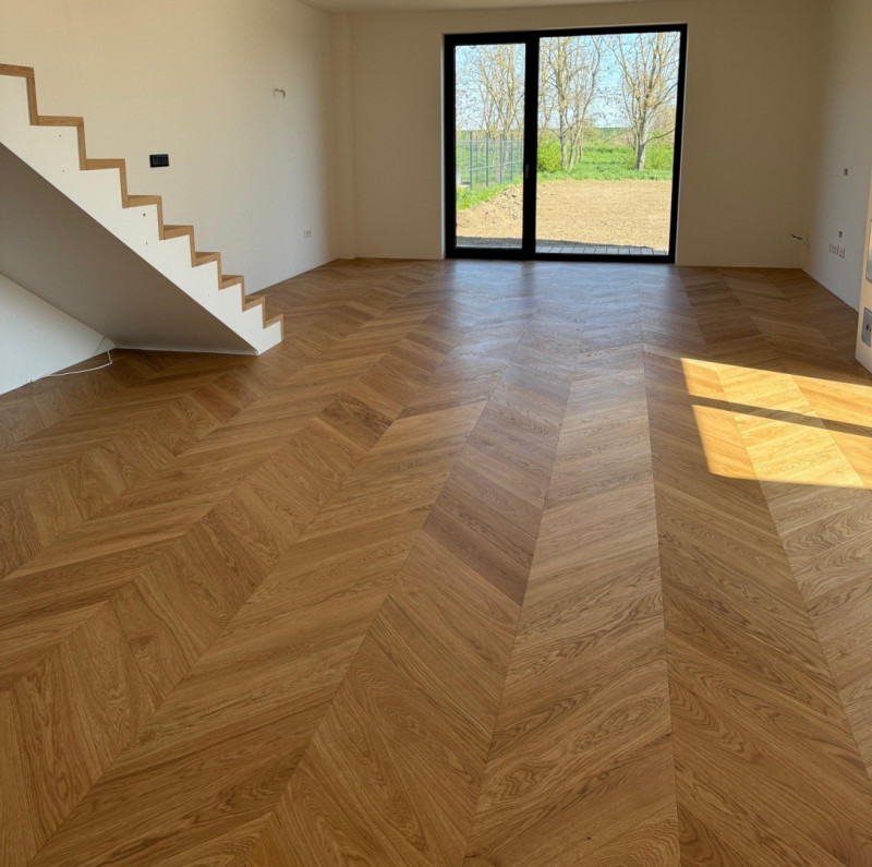 Dubové vlysy 500*60*21 mm, pokládka, povrchová úprava