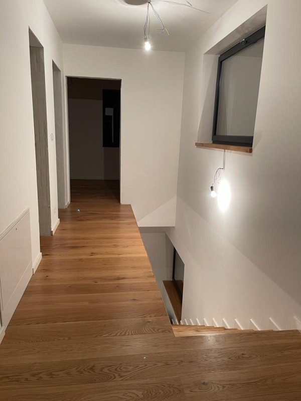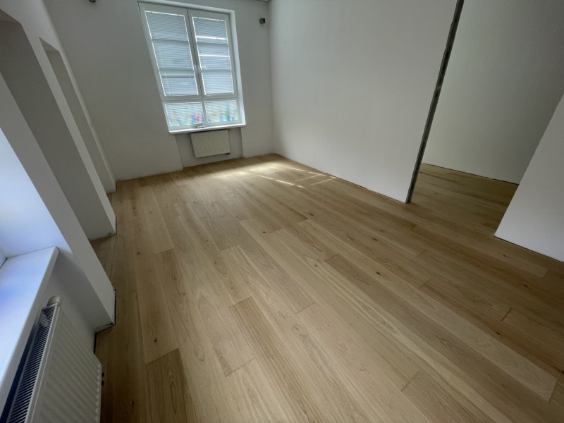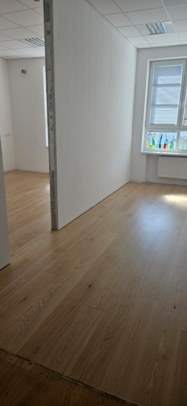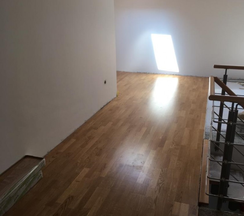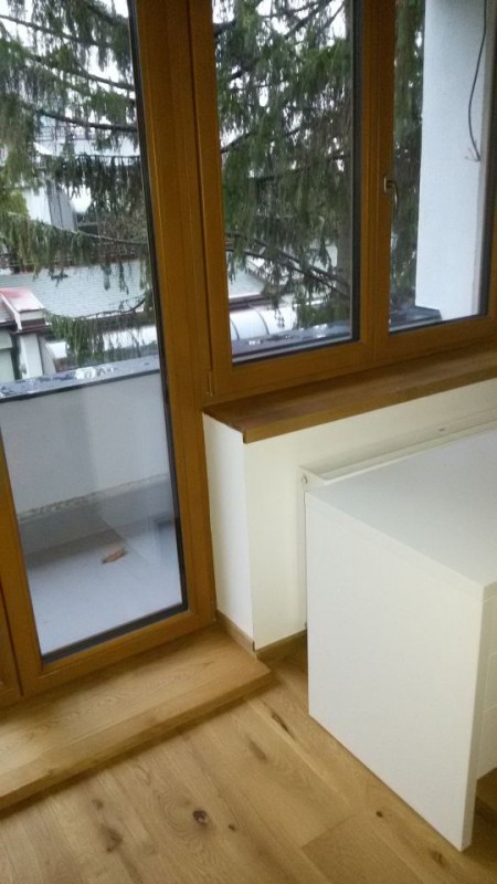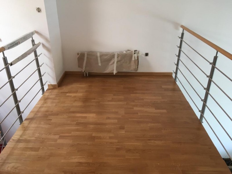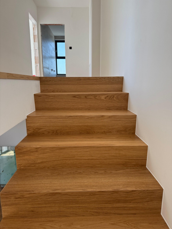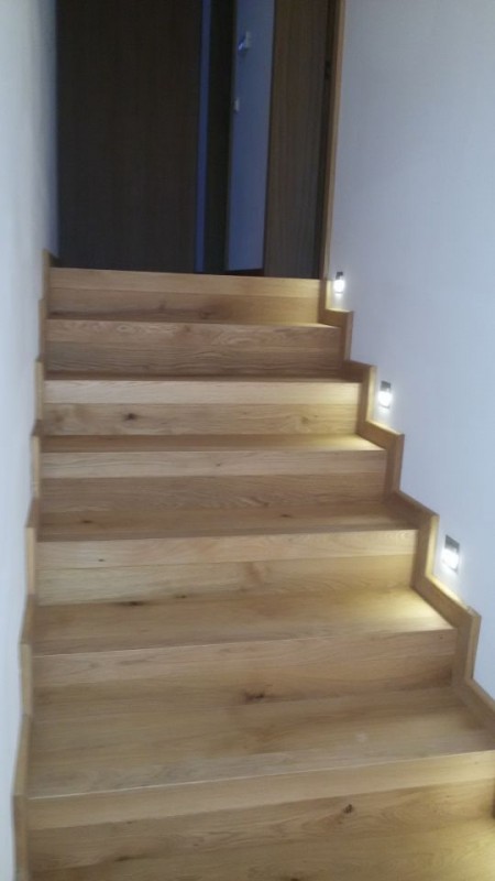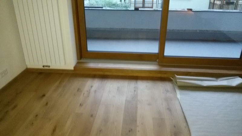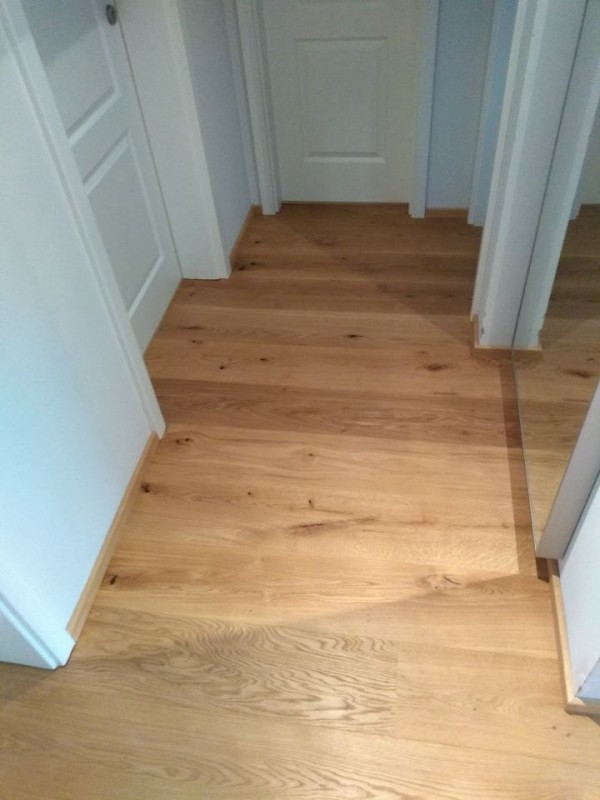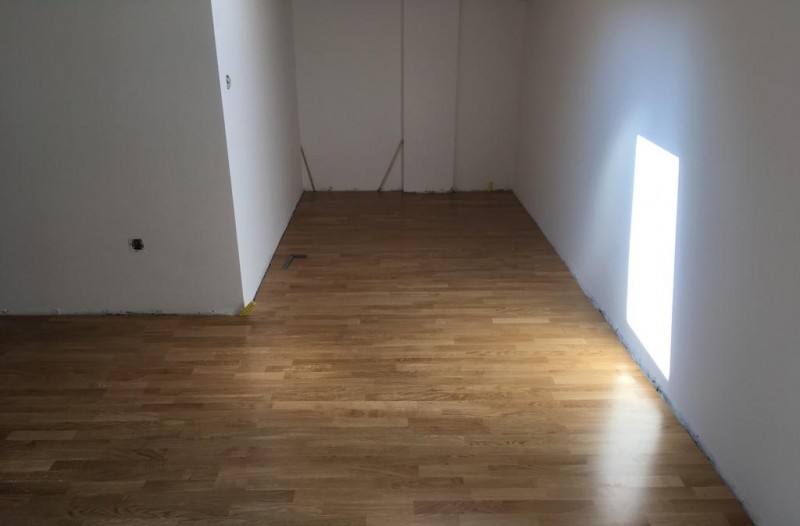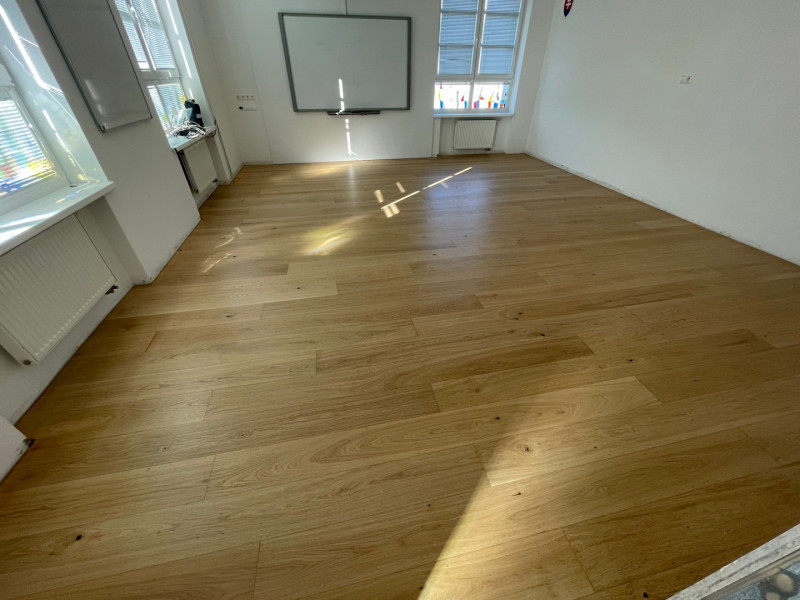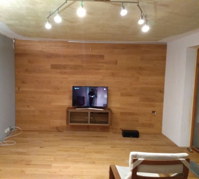 Renovácia dubové vlysy 350*50*20, dokladanie, brúsenie, lakovanie Bona Domo mat.lak