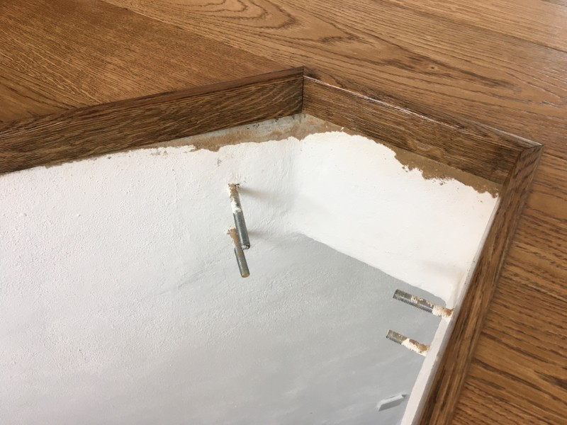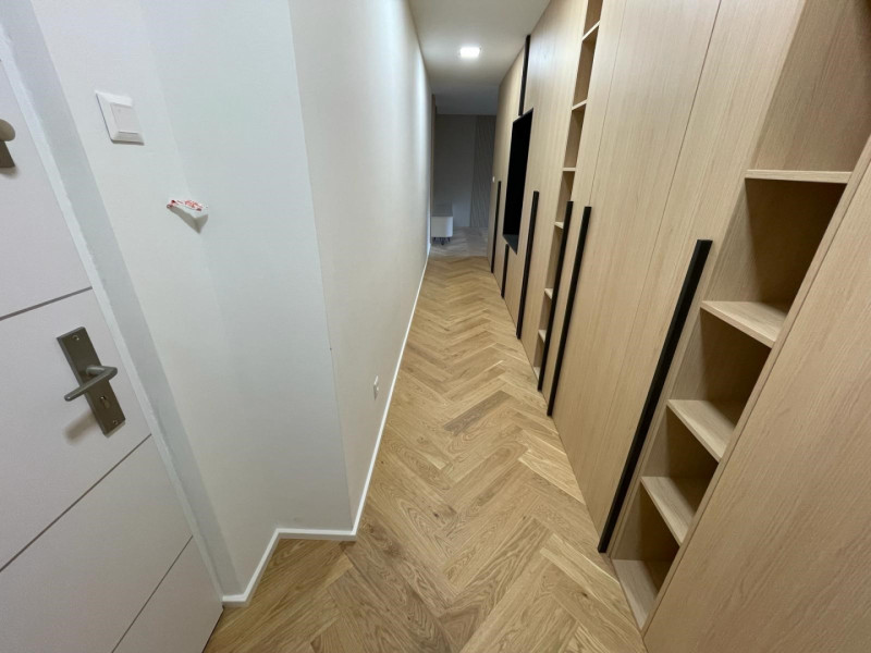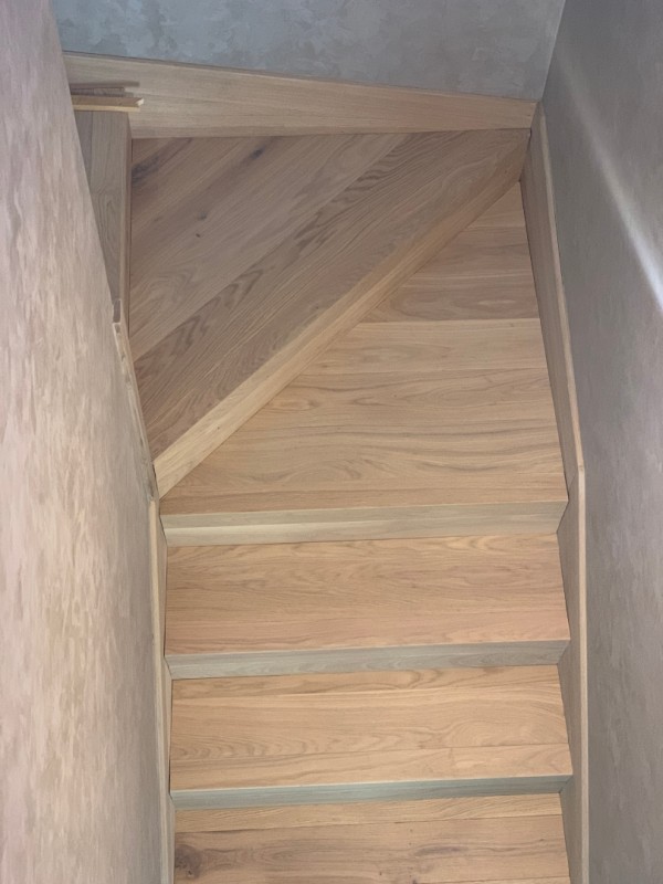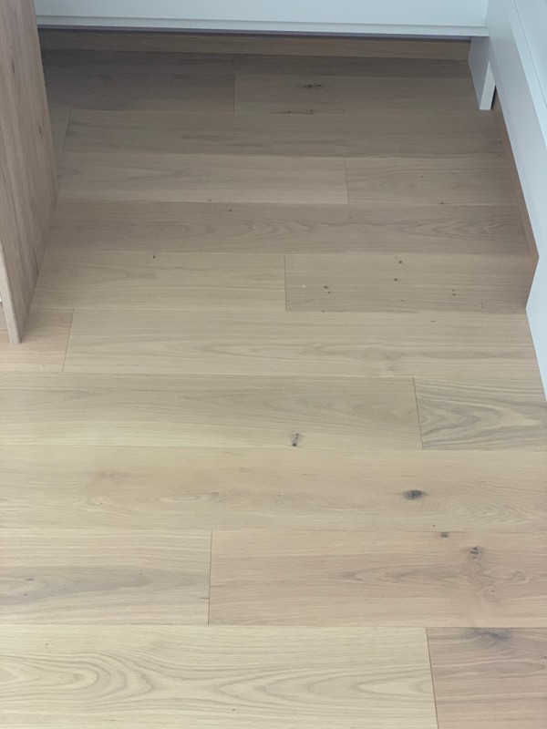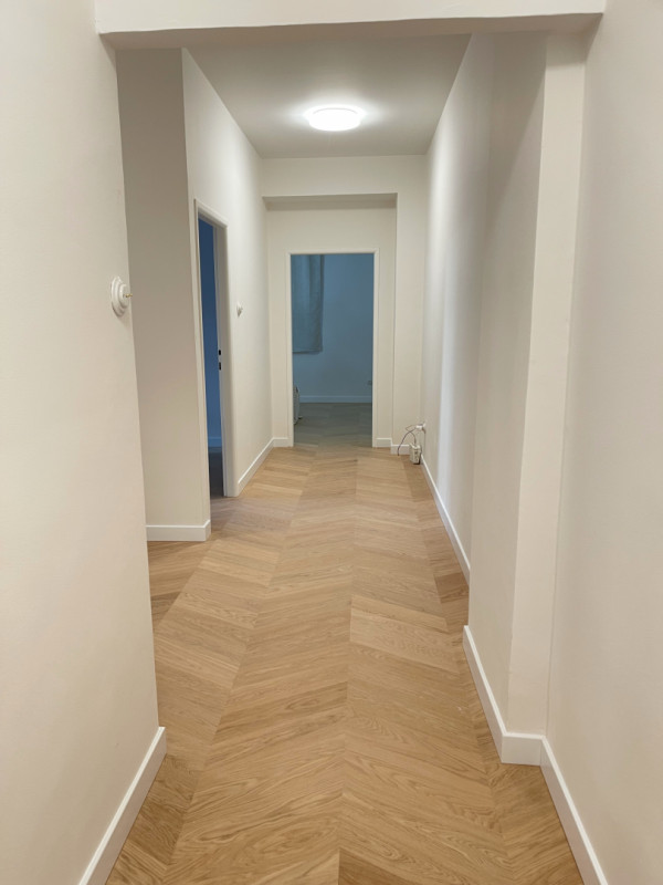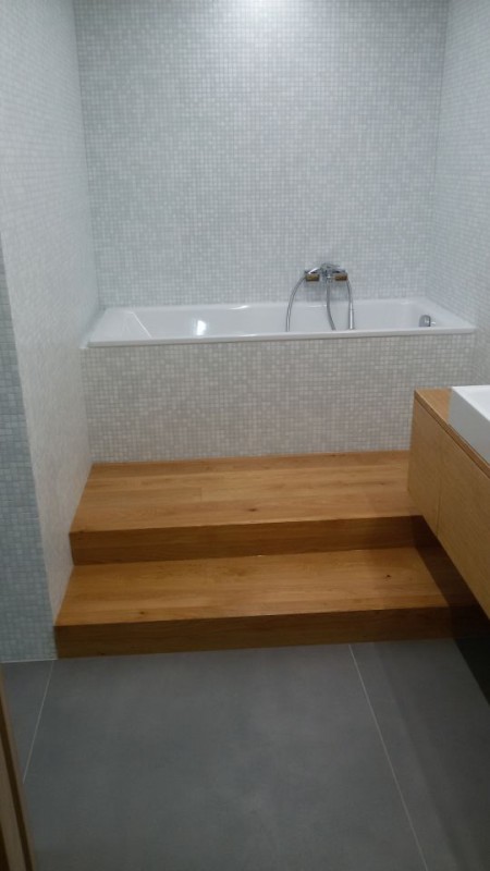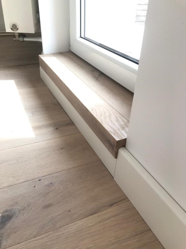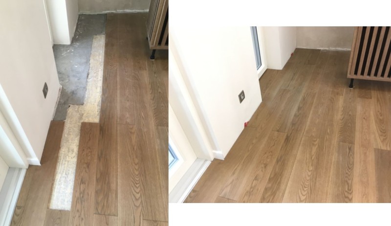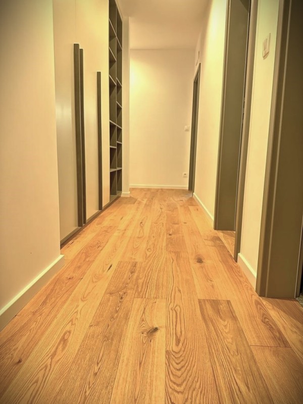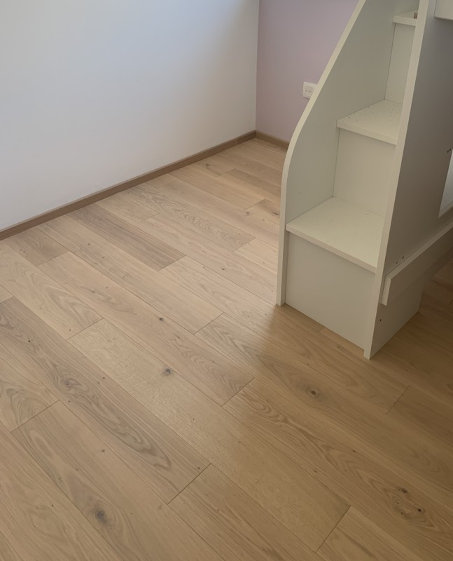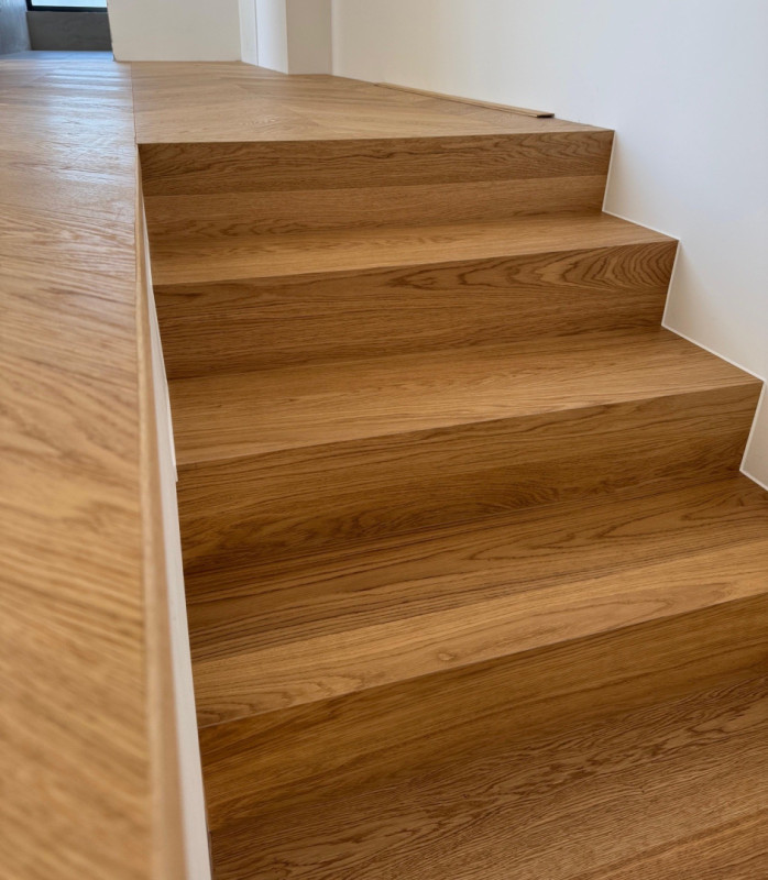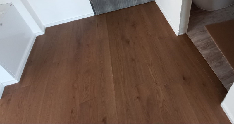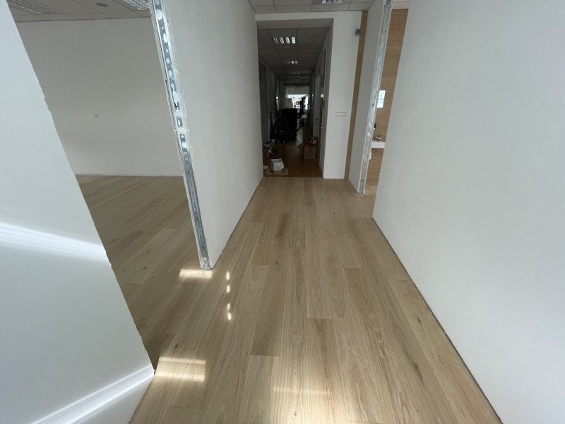 Renovácia dubové vlysy 350*50*20, dokladanie, brúsenie, lakovanie Bona Domo mat.lak