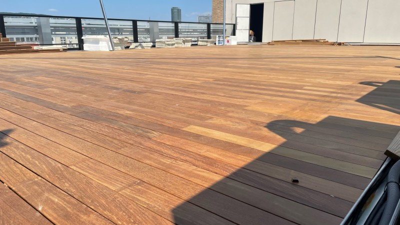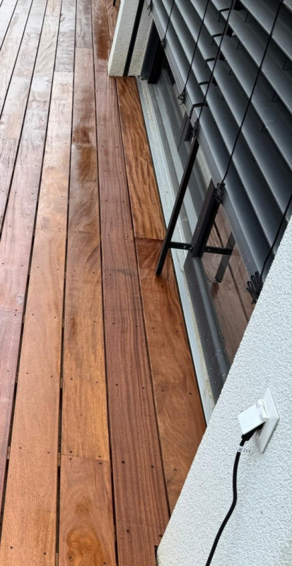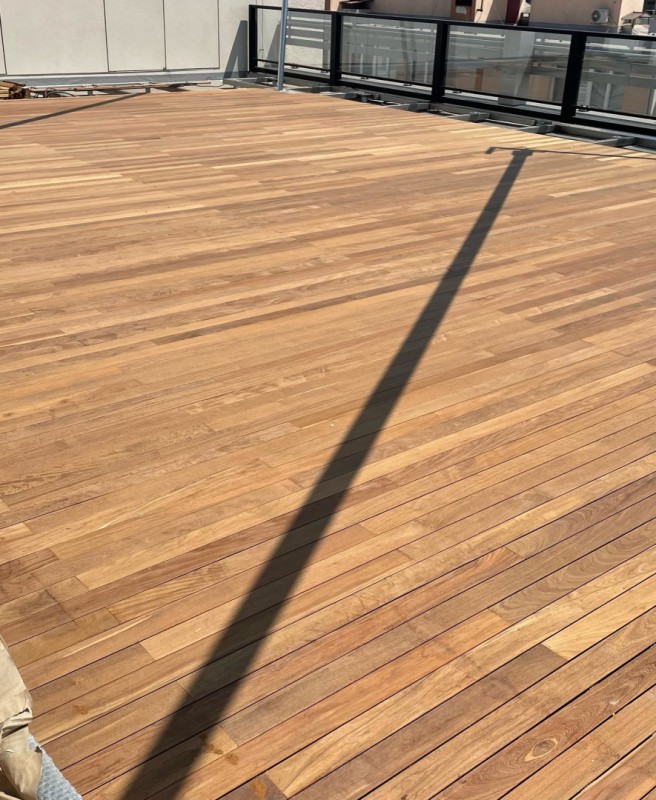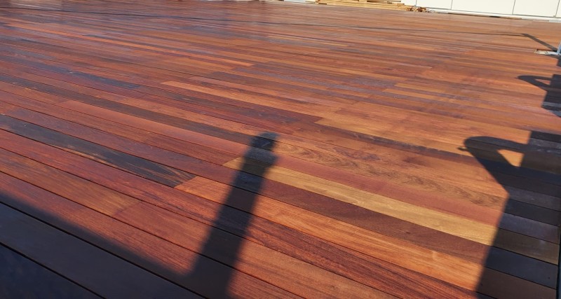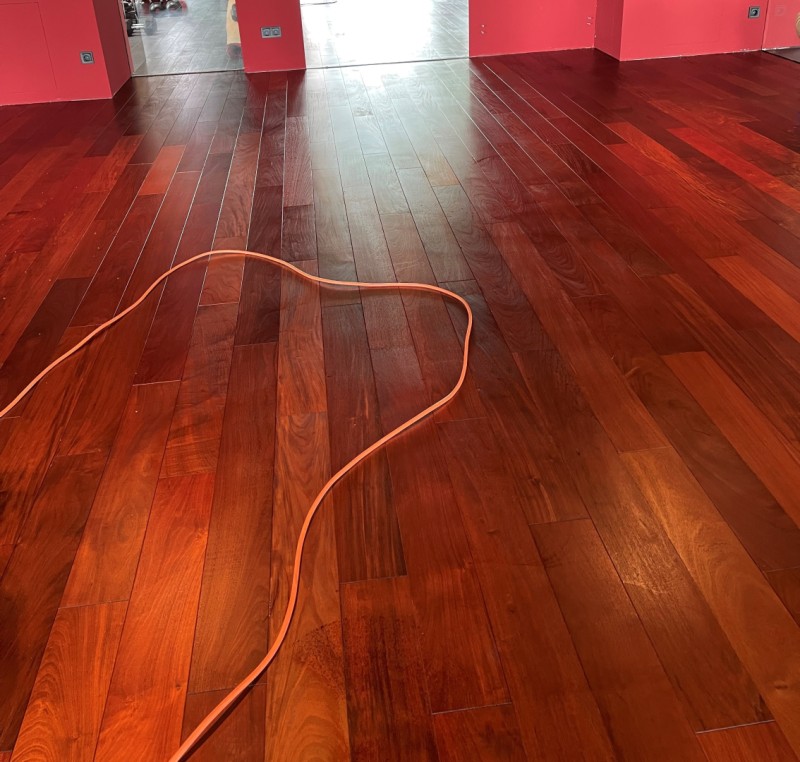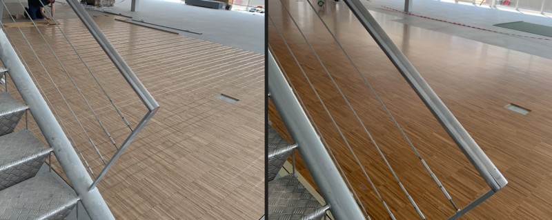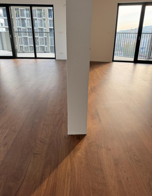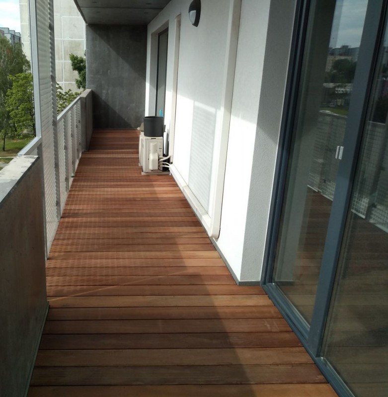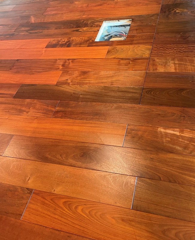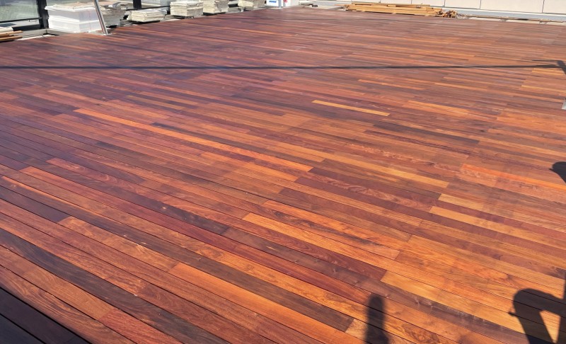 Renovácia parkiet Merbau, aplikácia vysokozáťažového laku