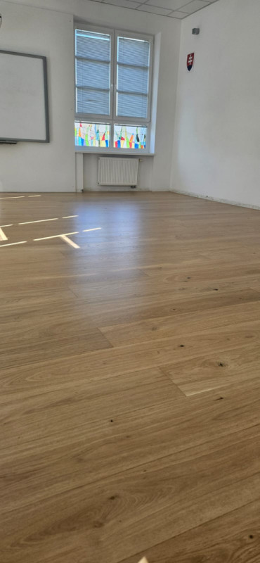 Renovácia parkiet - Priestory školy, lak Bona Traffic HD (vysokozáťažový)