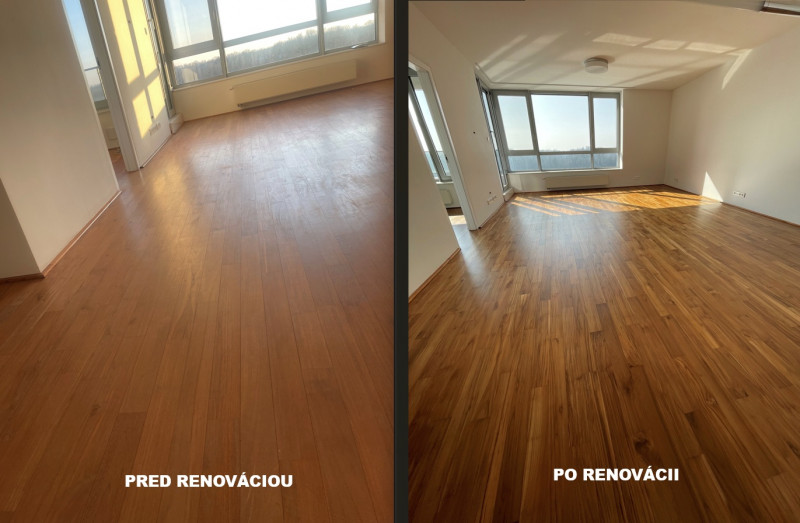 Renovácia parkiet TEAK - brúsenie, 2x tvrdý voskový olej matný Bona