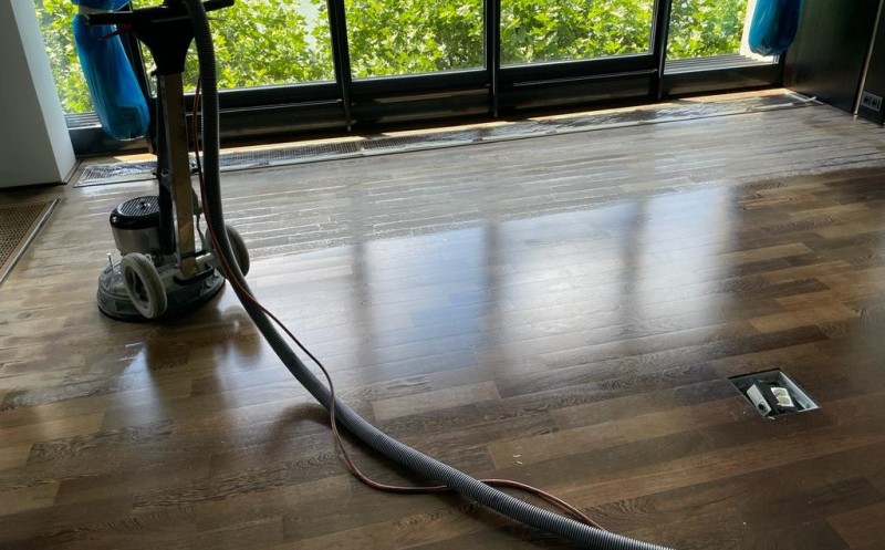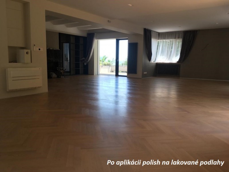 Čistenie lakovanej podlahy, aplikácia leštenky