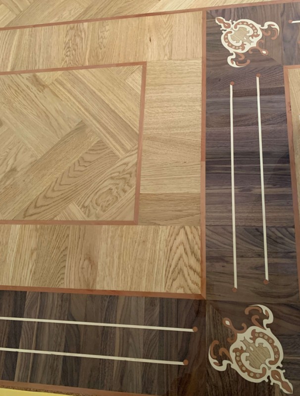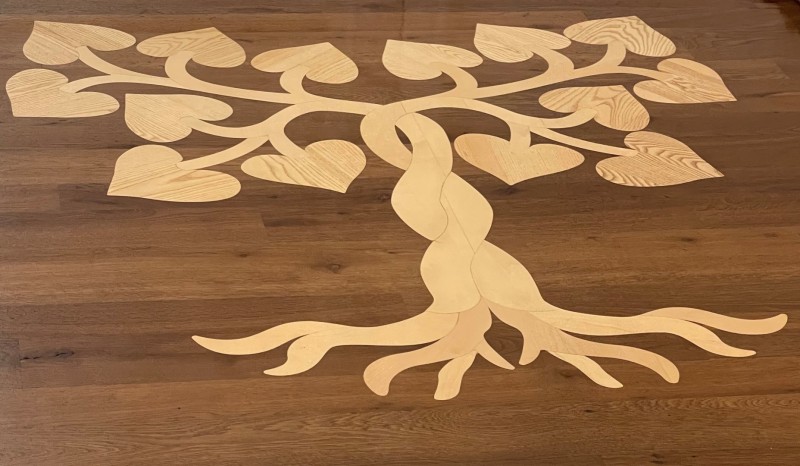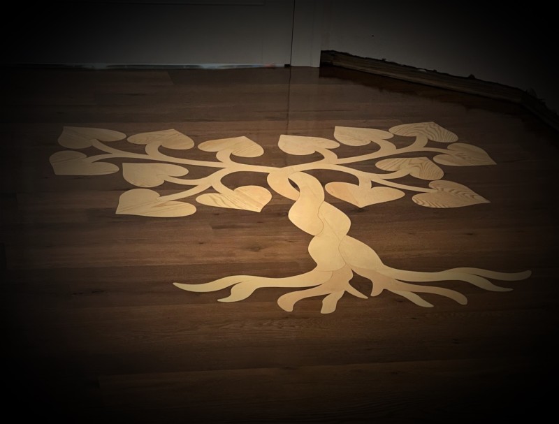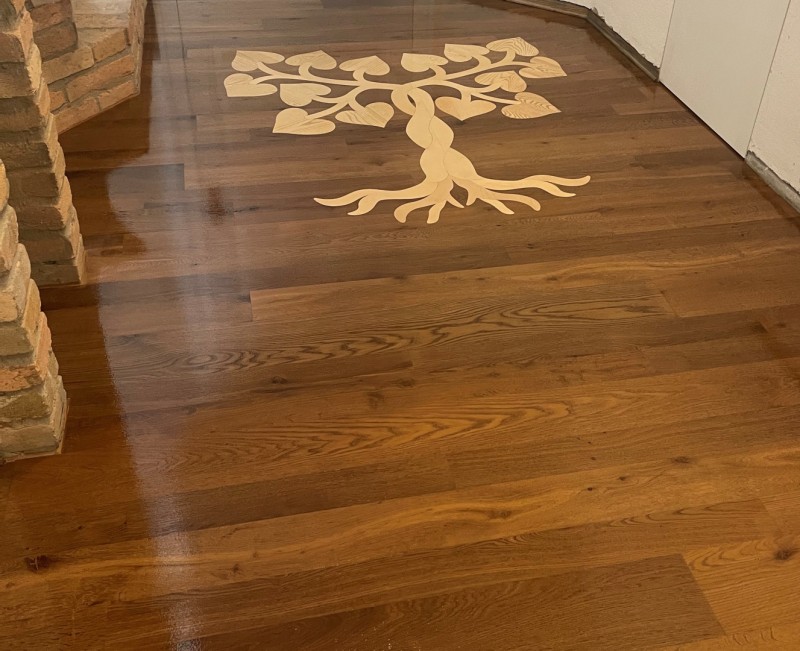INTARZIA - listy Jaseň, kmeň Javor, termo dub parkety, hard wax