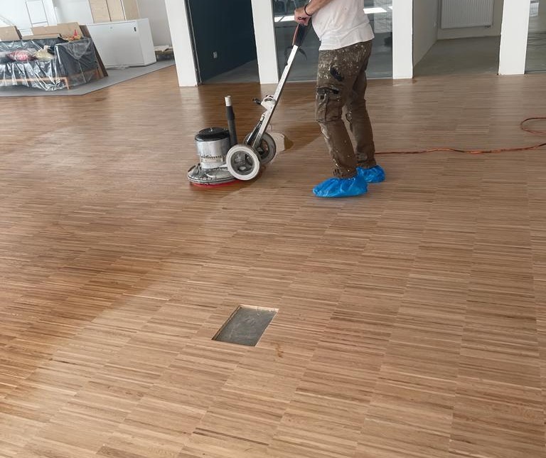 Renovácia veľkoplošných parkiet, kand.javor, tvrdý voskový olej