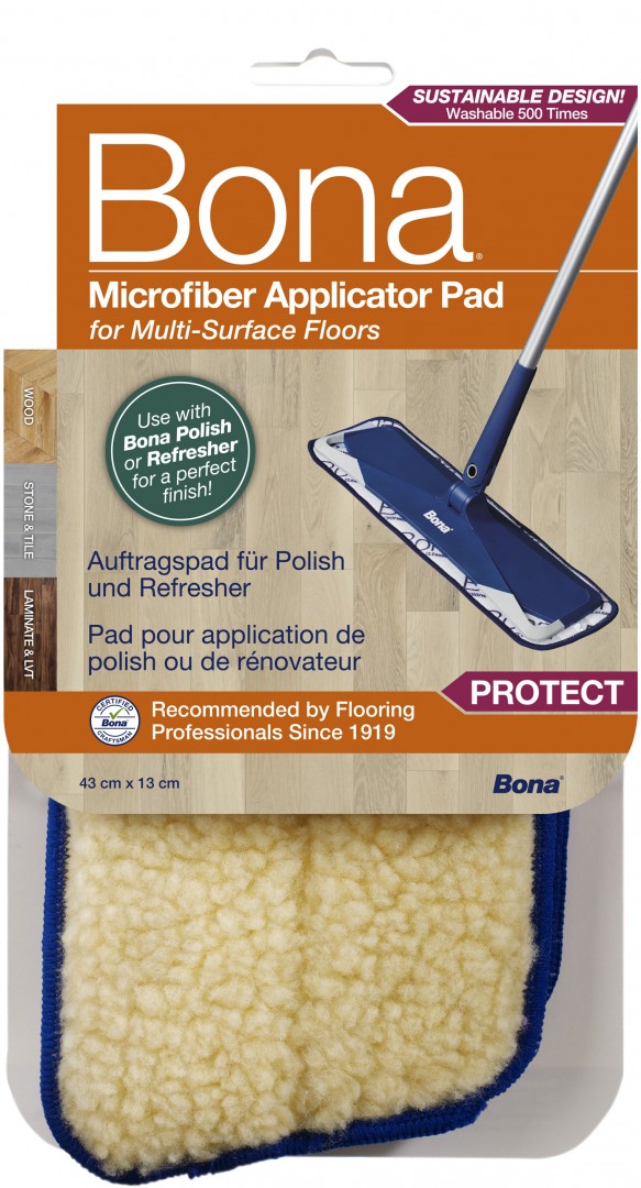 Bona Applicator Pad je utierka z mikrovlákna, ktorá je špeciálne navrhnutá na aplikáciu Bona polish/lešteniek na parkety alebo laminátove podlahy a dlaždice pripevnením na mop Bona. Utierku je možné prať v práčke (až 500 krát), bez použitia aviváže. Možnosť opakovaného použitia pripevnením pomocou suchého zipsu.